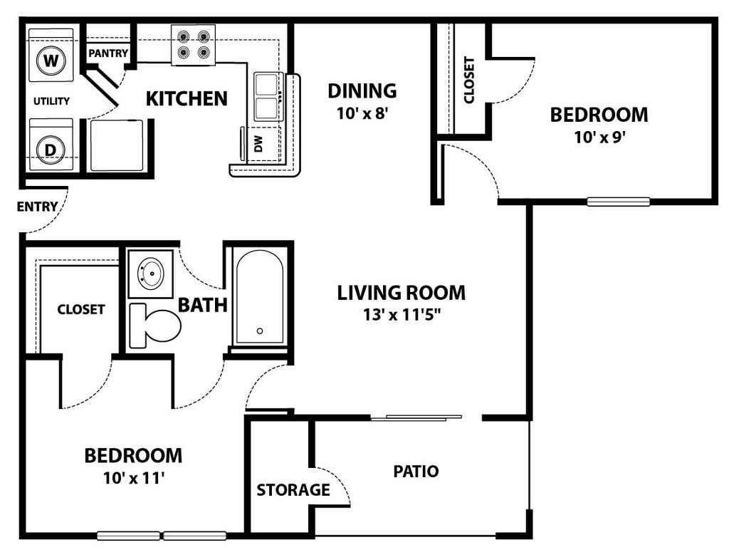 - 2 Bedrooms- 21-602 Beds, 1 Bath, 800 sq ftAvailable Now- Model Gallery- Floorplans- Availability Details- Availability Date - Unit - Sq Ft - Deposit - Available Now - 21-60 - 800 sq ft - $300 - Model Amenities and Features- Features- Air Conditioning