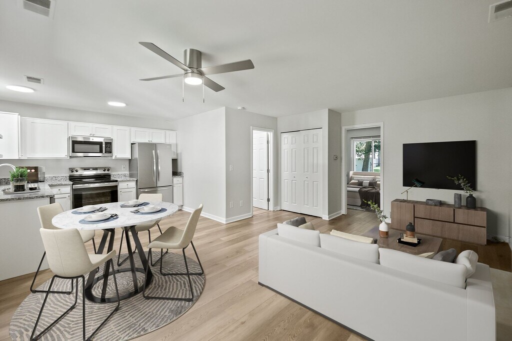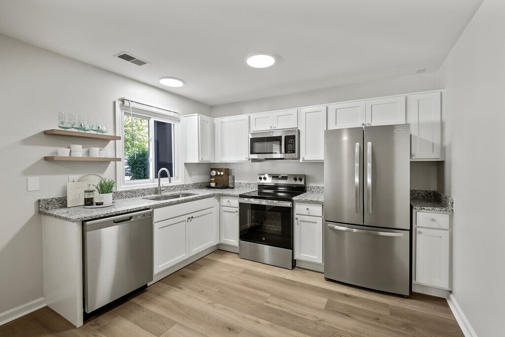 Welcome to Plymouth Collection, a freshly renovated apartment complex located in the heart of downtown Plymouth, MI. Our apartments are designed with modern fixtures and high-quality amenities that cater to your comfort and convenience. Each unit is equipped with a washer and dryer, a dishwasher, and central AC for your convenience. The kitchen is a chef's dream, boasting stainless steel appliances, a microwave, and white shaker cabinets. The granite countertops add a touch of elegance, while the vinyl plank flooring throughout the apartment offers a sleek, modern look. Experience the perfect blend of style, comfort, and convenience at Plymouth Collection.