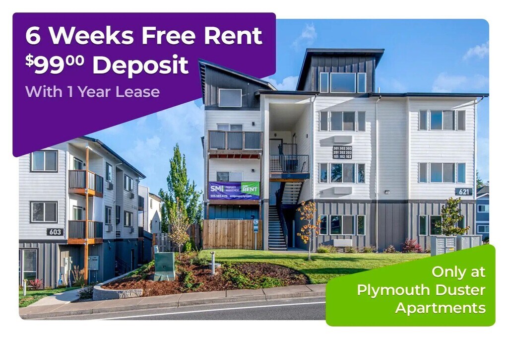NOW OFFERING A WEEKLY SPECIAL!! Apply by December 4th and receive a $75 Safeway gift card!! PLUS YOU'LL RECEIVE 6 WEEKS FREE RENT & PAY ONLY $99 SECURITY DEPOSIT!! *upon approved screening criteria, 12 month lease required. THAT MEANS $99 MOVES YOU IN!! Welcome to the Plymouth Duster Apartments in Keizer! Conveniently located near many Keizer conveniences and just off the MLK Parkway with easy access to I-5! These new apartment homes feature luxury vinyl plank flooring (with some units having carpeted bedrooms), granite countertops, washer and dryer set included in the unit, modern stainless steel appliances, A/C, and pet friendly! Breathe easy non-smoking property! Up to 2 pets welcome with additional security deposit and monthly pet rent. Each pet must be at least 1 year old, no more than 45 lbs, and up to date on all vaccinations.