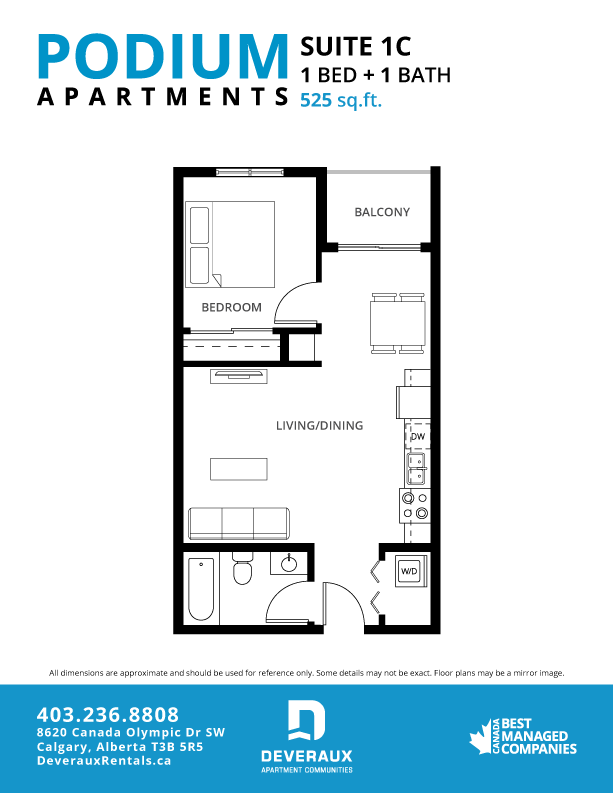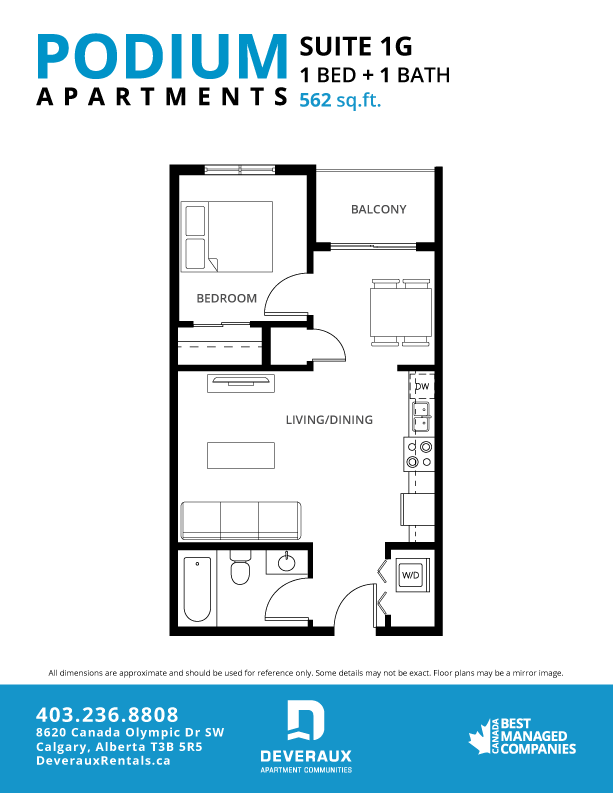 Elevate your living experience at Podium Apartments where luxury meets convenience in southwest Calgary, just steps away from Canada Olympic Park. Indulge in exclusive amenities at our resident clubhouse, including a state-of-the-art fitness centre, an immersive golf simulator and a refreshing outdoor swimming pool.Podium Apartments is ideally located with onsite retail and professional services as well as a town centre with Save-on-Foods, PetSmart, GoodLife Fitness and Dollarama making Podium a perfect place to live, work and play.