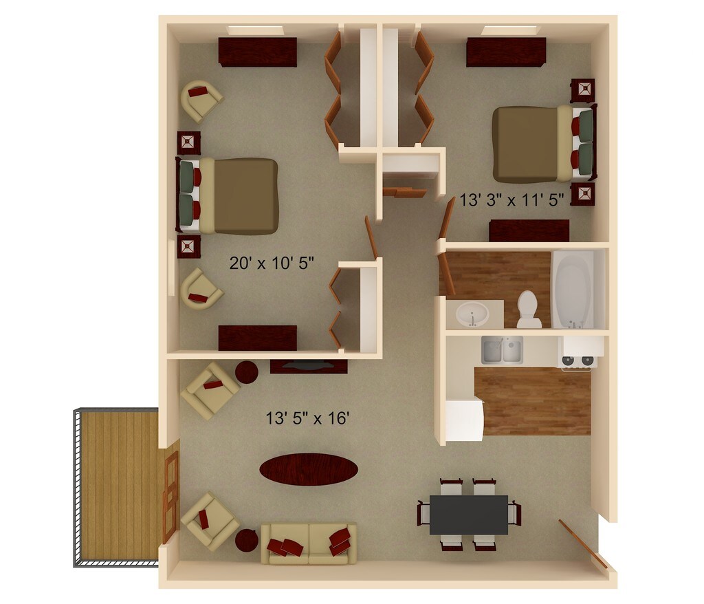 2 Beds, 1 Bath, 889 sq ftTotal Monthly PriceAvailable NowModel Gallery