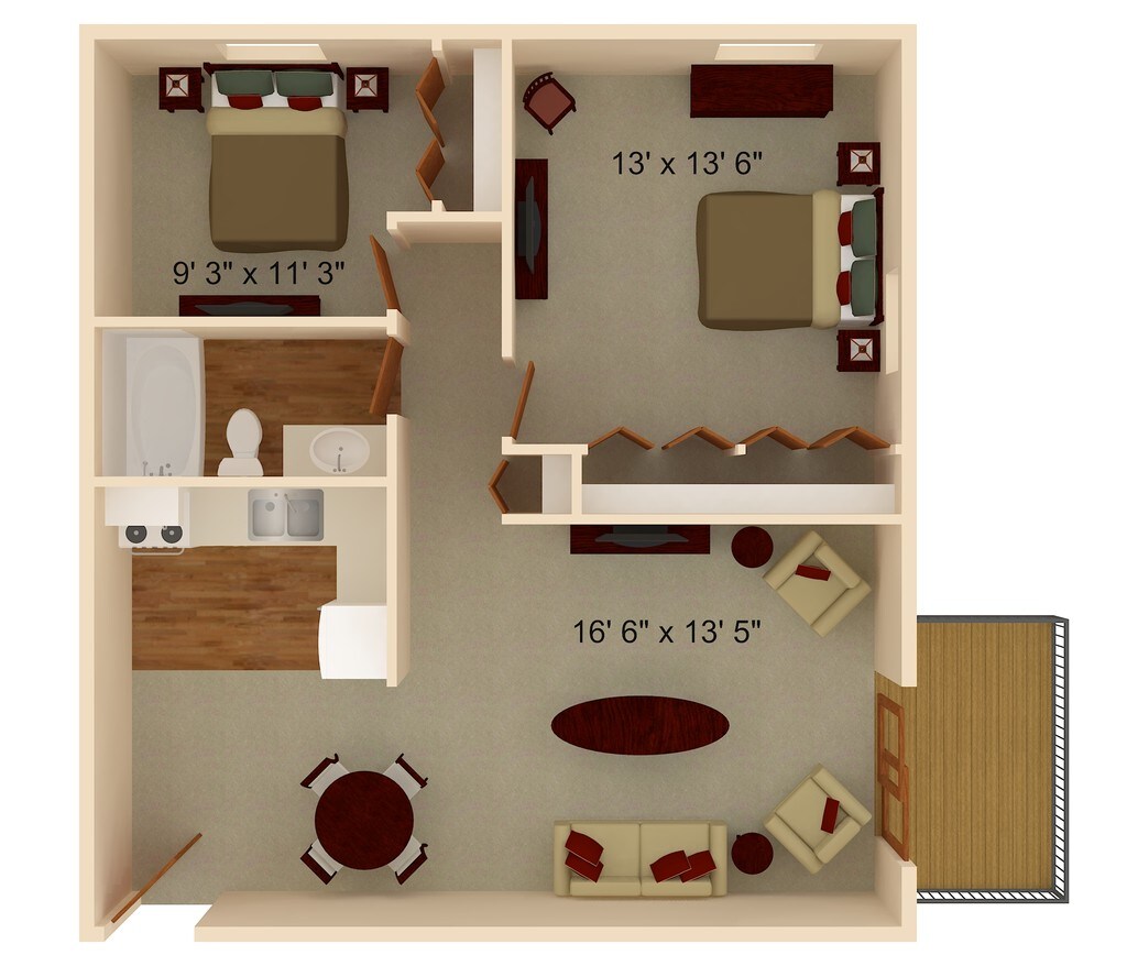 Apartment Model: 2 Bedroom - C - CONTACT FOR AVAILABILITY$1,0022 Bedroom, 1 Bath, 953 sq ftAvailable Now![]()