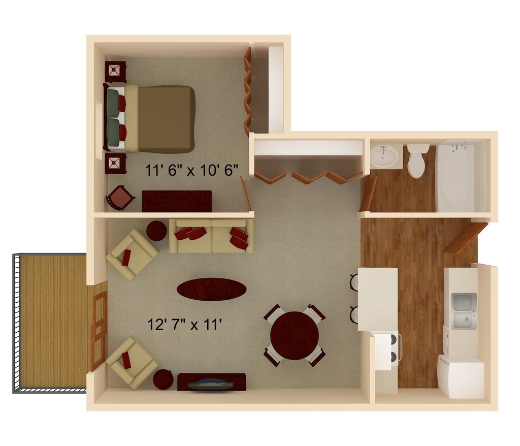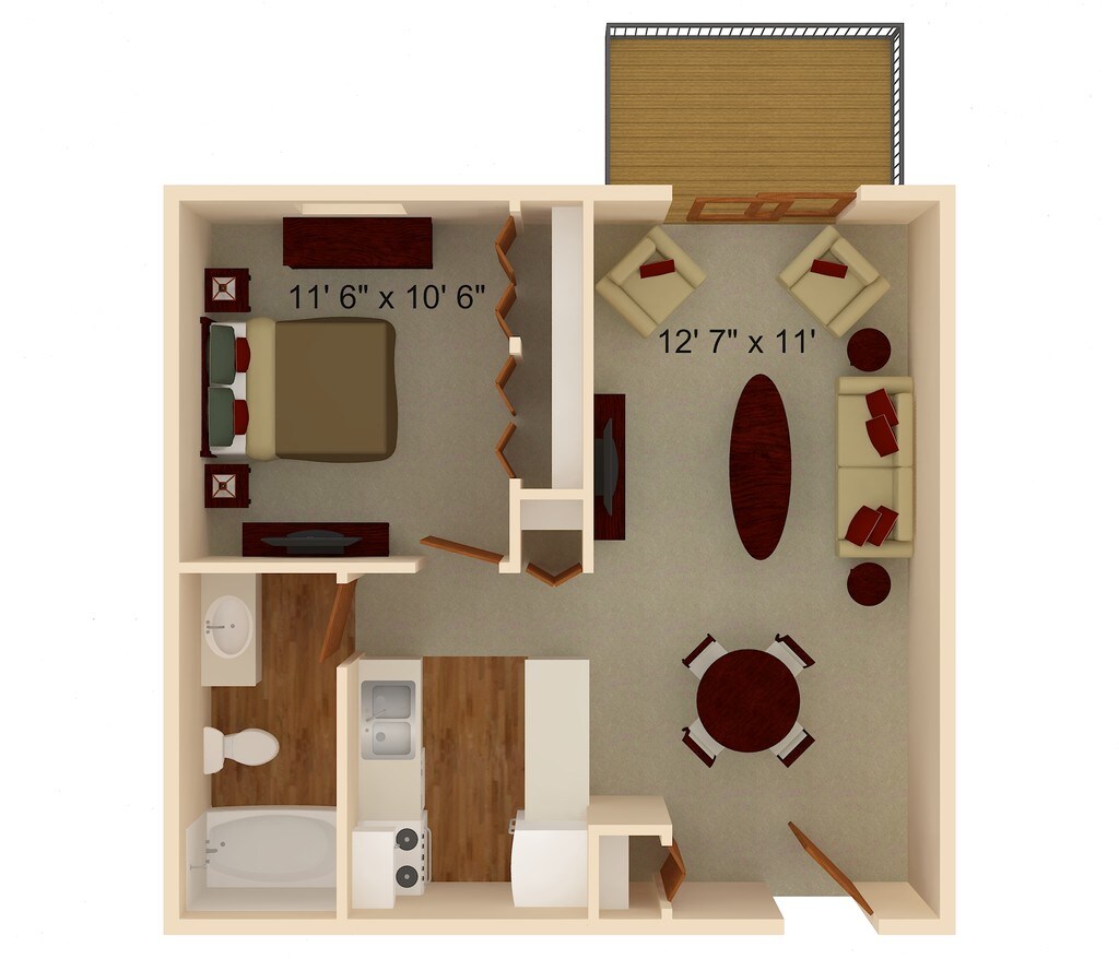 Apartment Model: 1BD/1BA Large - CONTACT FOR AVAILABILITY$8271 Bedroom, 1 Bath, 710 sq ftAvailable Now![]()