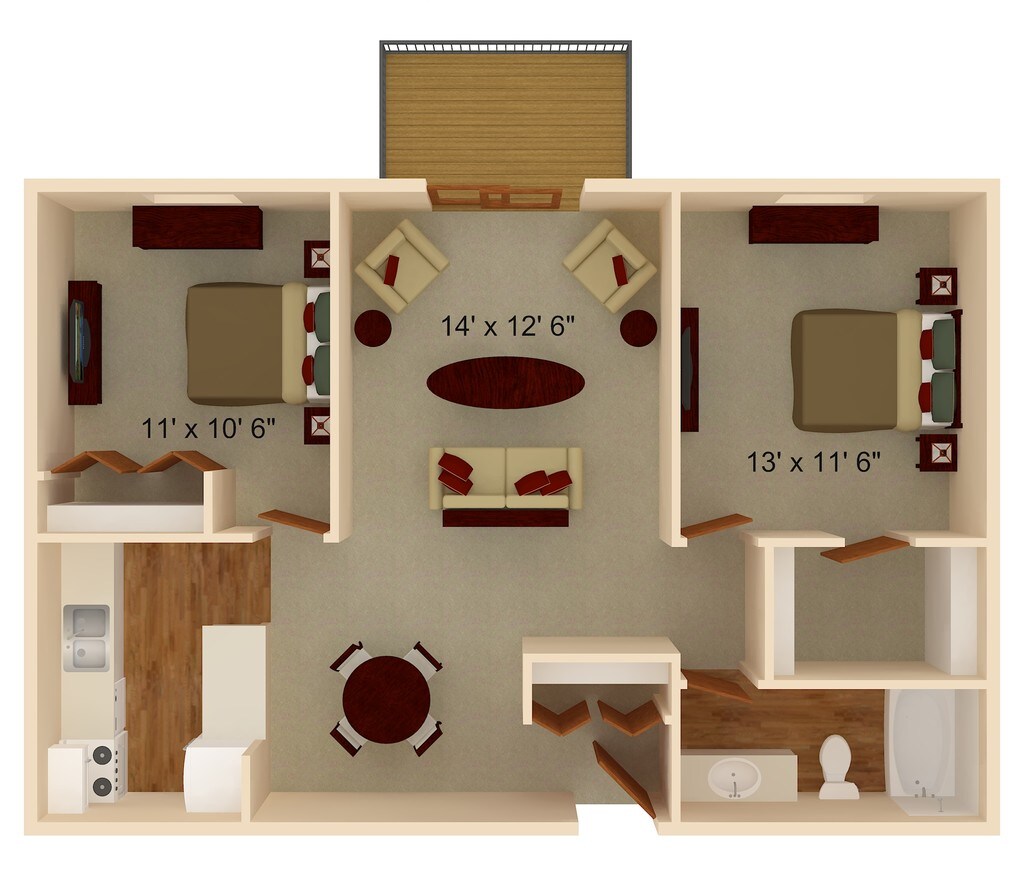 2 Beds, 1 Bath, 880 sq ftTotal Monthly PriceAvailable NowModel Gallery