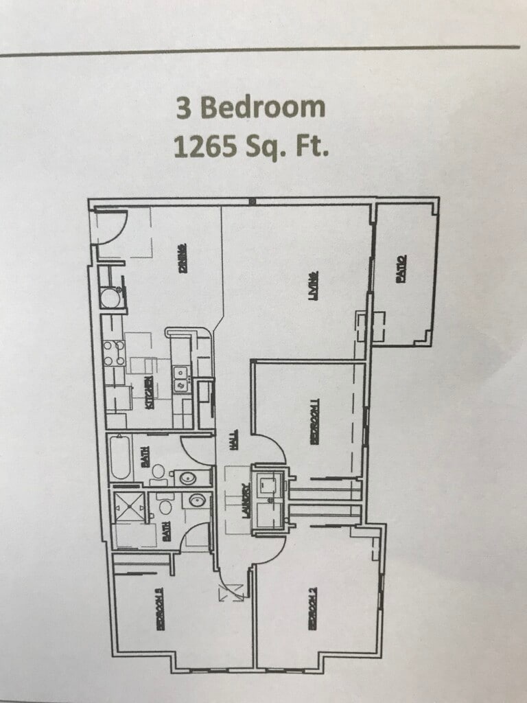 Apartment Model: 3 Bedroom$1,2393 Bedroom, 2 Bath, 1184 sq ftAvailable NowFloorplansPhotos![]()