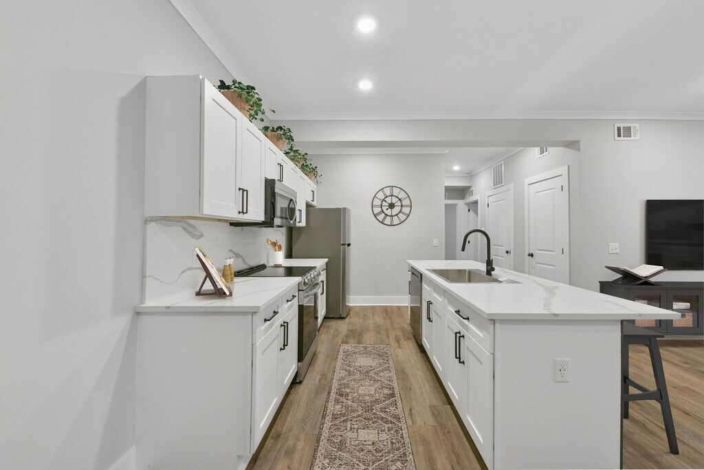 Pointe Grand Cartersville proudly presents brand-new two-bedroom apartments offering 1,170 square feet of open living space. These apartments feature upscale interior amenities, including wood-inspired flooring, quartz countertops, stainless steel appliances, oversized kitchen islands, LED lighting, and keyless entry. Residents also enjoy community amenities such as a 24-hour fitness center, a resort-style pool with private cabanas, and a Starbucks coffee and tea bar. In addition, Pointe Grand is a pet-friendly community, offering amenities like a leash-free bark park and a pet spaw, making it a perfect home for you and your furry friend.