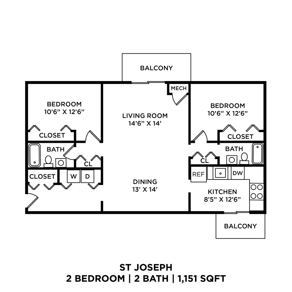 Pointe at Saint Joseph Apartment Homes offers 1 to 2 Bedroom apartments starting from $1,490 and having 700–1,151 sq ft. Here is the current pricing and availability: