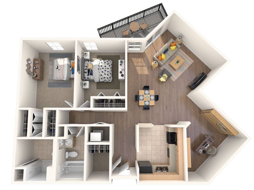 Apartment Model: A2RFrom $1,0041 Bedroom, 1 Bath, 748 sq ftAvailable Now![]()