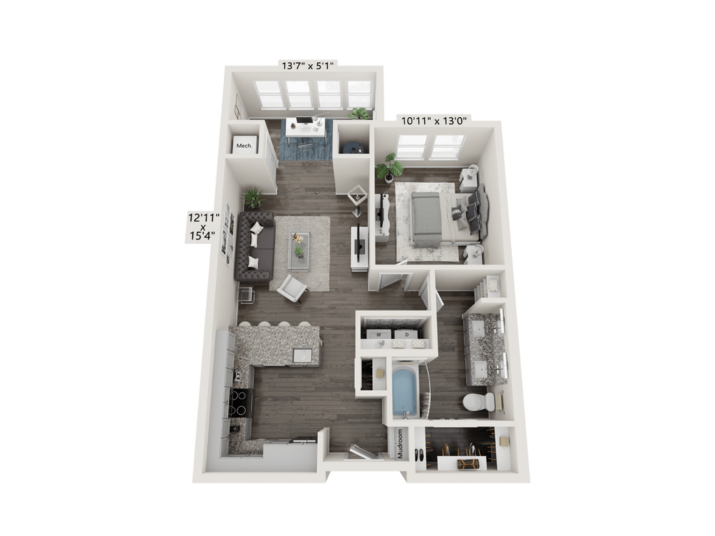 1 Bed, 1 Bath, 843 sq ftTotal Monthly PriceAvailable NowLargest 1 BedroomThis is the largest 1 Bedroom at this PropertyModel Gallery