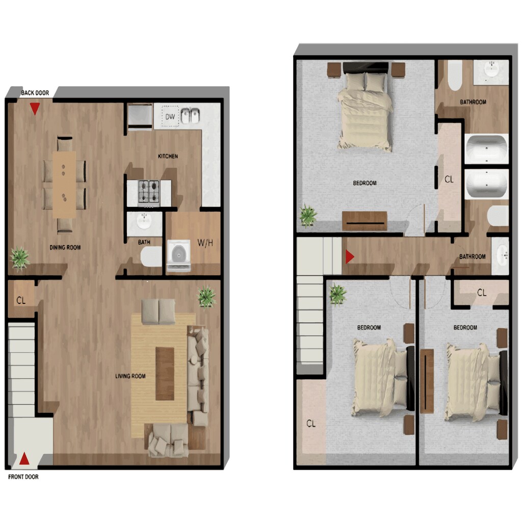 3 Beds, 2.5 Baths, 1550 sq ftModel Gallery