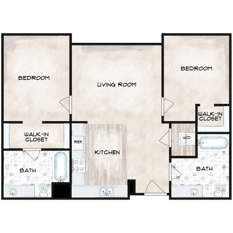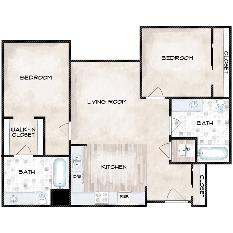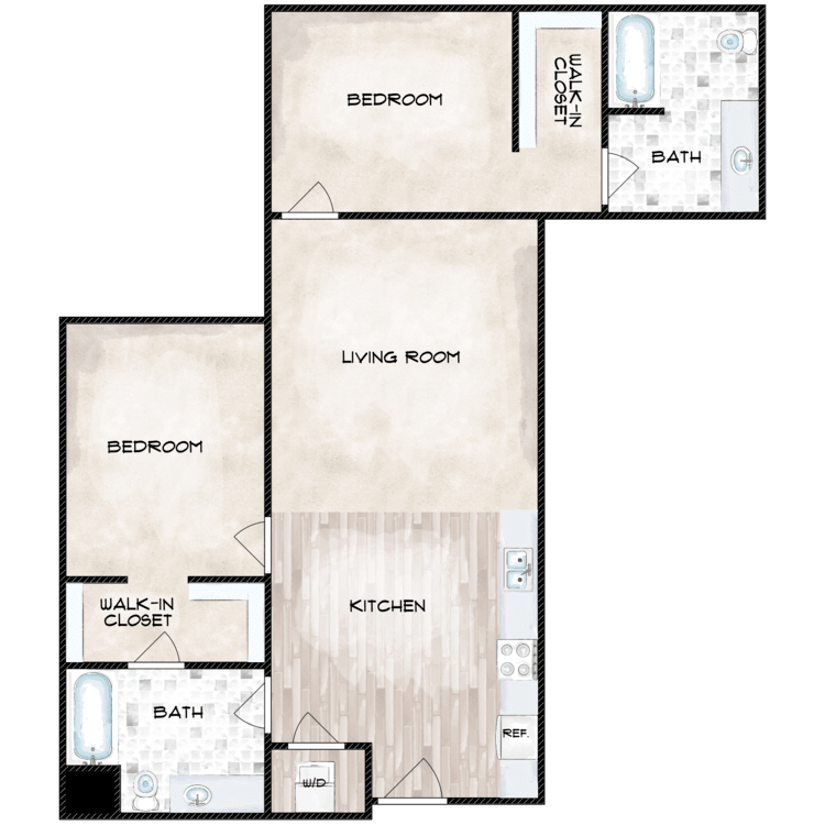 2 Beds, 1 Bath, 878 sq ftModel Gallery