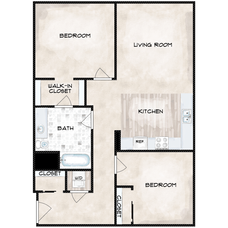 2 Beds, 1 Bath, 716 sq ftModel Gallery