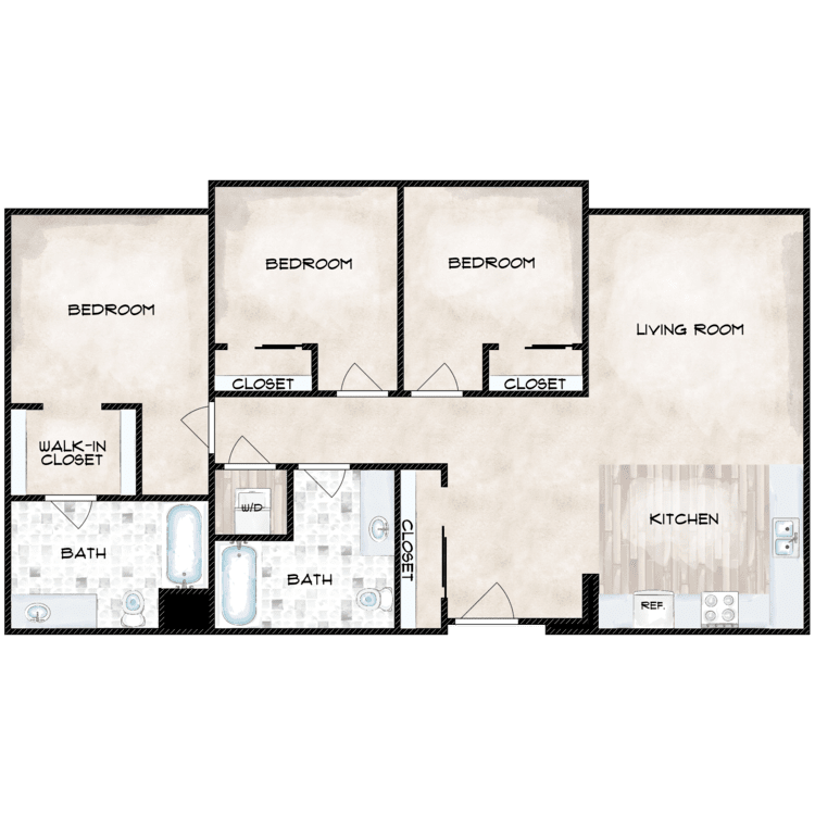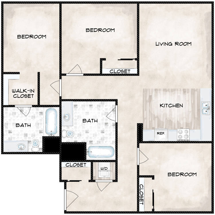 - Spacious Bedrooms with Walk-in Closets