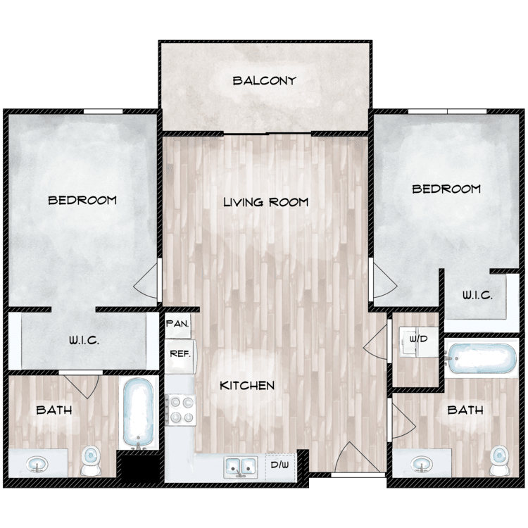 2 Beds, 2 Baths, 862 sq ftModel Gallery
