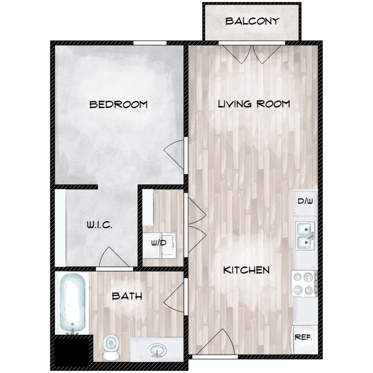 1 Bed, 1 Bath, 523-582 sq ftAvailable NowModel Gallery