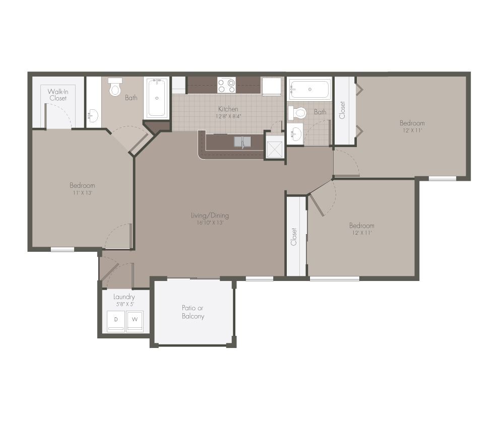 3 Beds, 2 Baths, 1196 sq ftAvailable NowModel Gallery