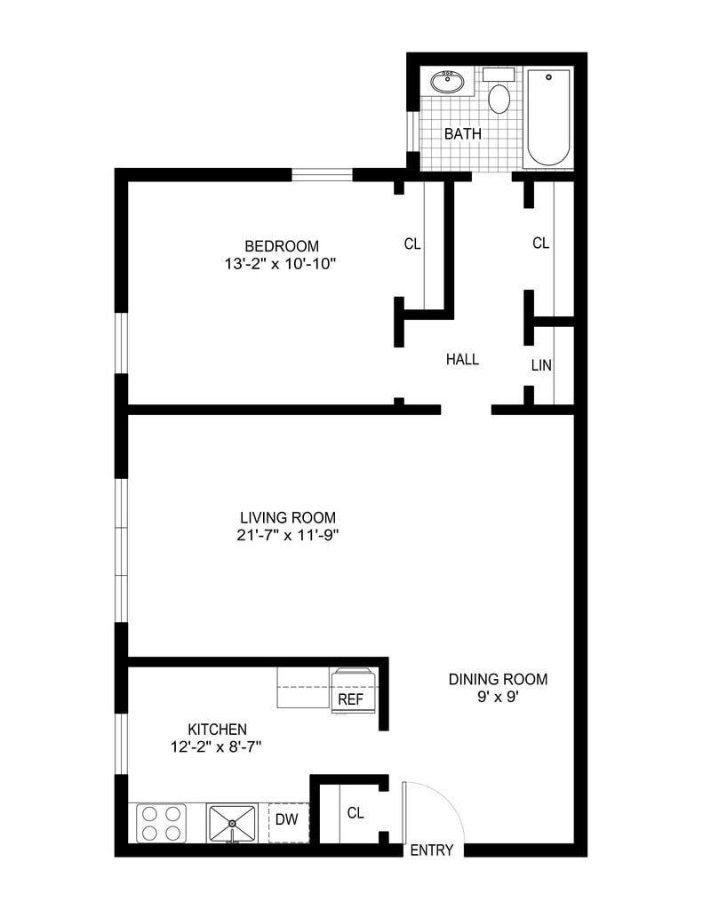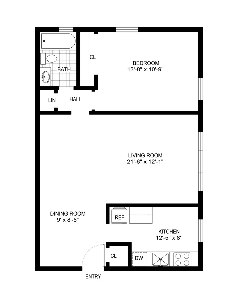1 Bedroom - Floorplan 2 1 Bedroom Walk In