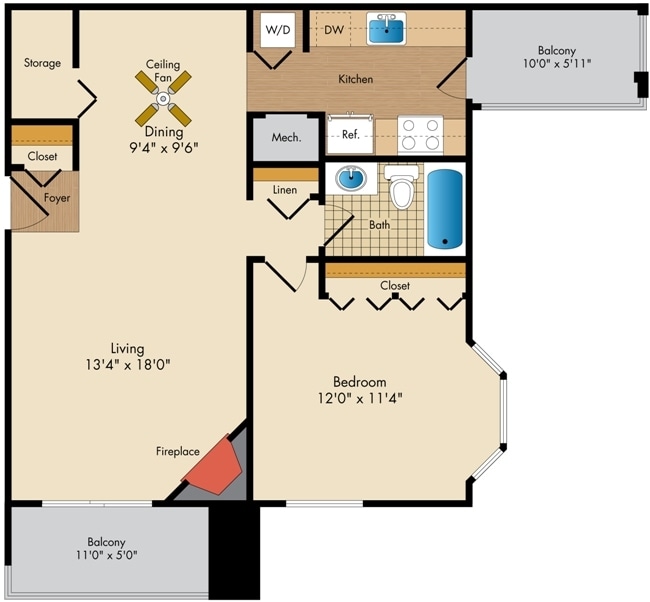 Apartment Model: B1RCall For Rates2 Bedroom, 1.5 Bath, 1070 sq ftUnavailable![]()