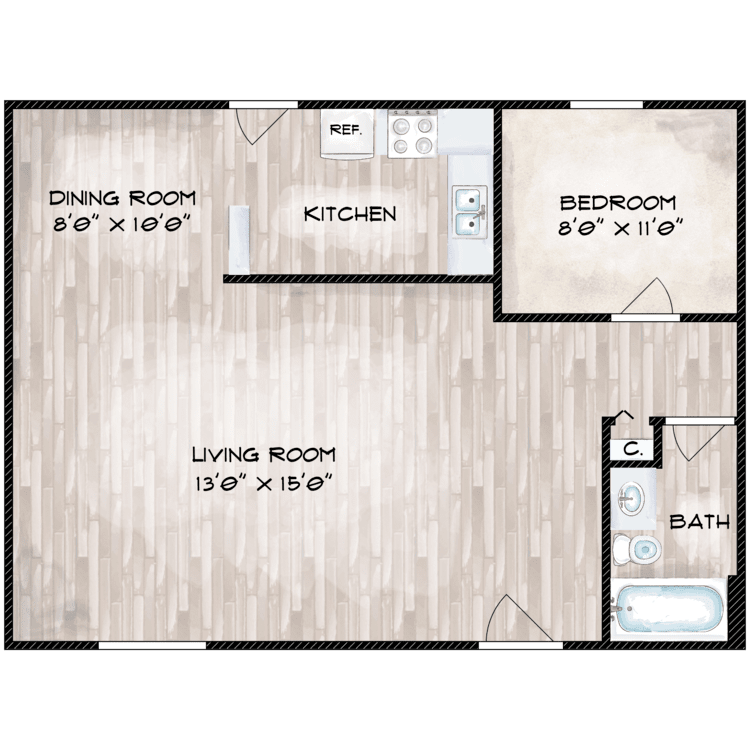 2 Beds, 1 Bath, 800 sq ftModel Gallery
