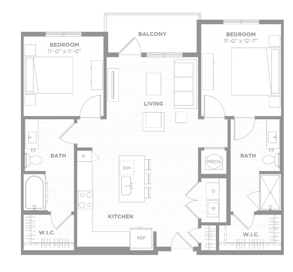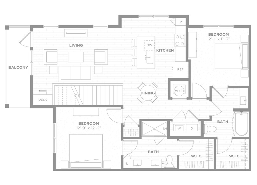 2 Beds, 2 Baths, 1217 sq ftAvailable NowLargest 2 BedroomThis is the largest 2 Bedroom at this PropertyModel Gallery