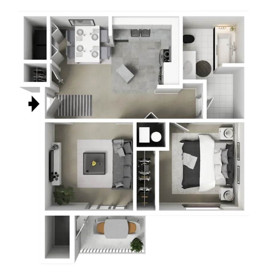 Apartment Model: A3$1,3691 Bedroom, 1 Bath, 741 sq ftAvailable October 27, 2025![]()