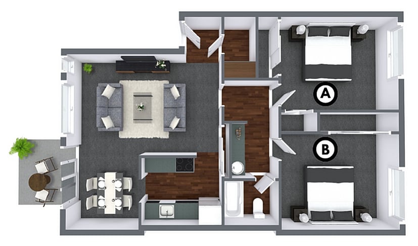 Apartment Model: One Bedroom - H PlanFrom $2,0451 Bedroom, 1 Bath, 650-659 sq ftAvailable September 1, 2026![]()