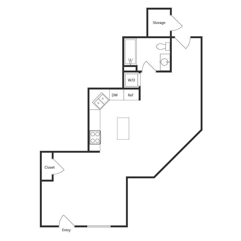 Studio Apartment 1 Bathroom - Floorplan 4 1 Bedroom