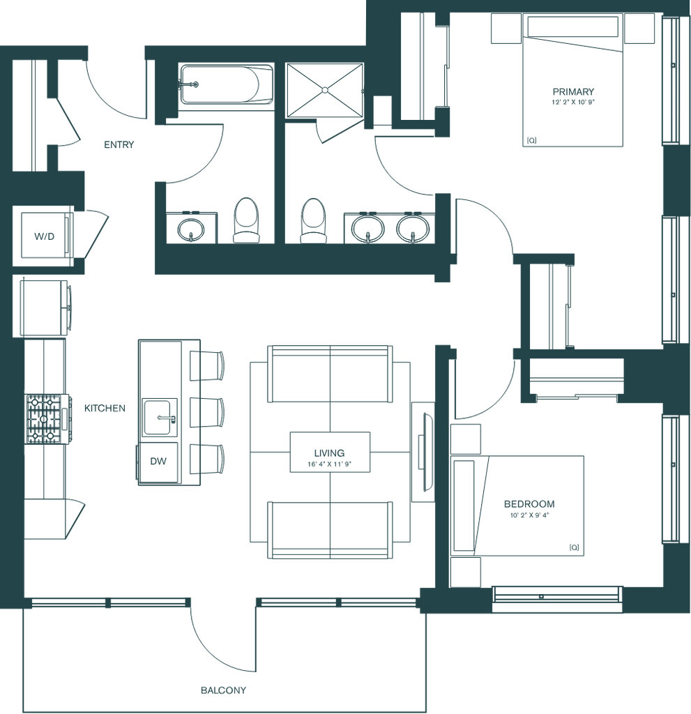 1 Bed, 1 Bath, 626 sq ftAvailable NowModel Gallery