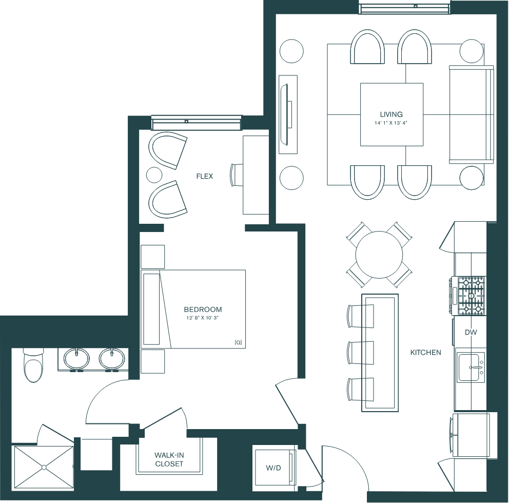 Apartment Model: 1 Bed/1 Bath Flex Space-B7R1 Bedroom, 1 Bath, 777 sq ftAvailable Now![]()