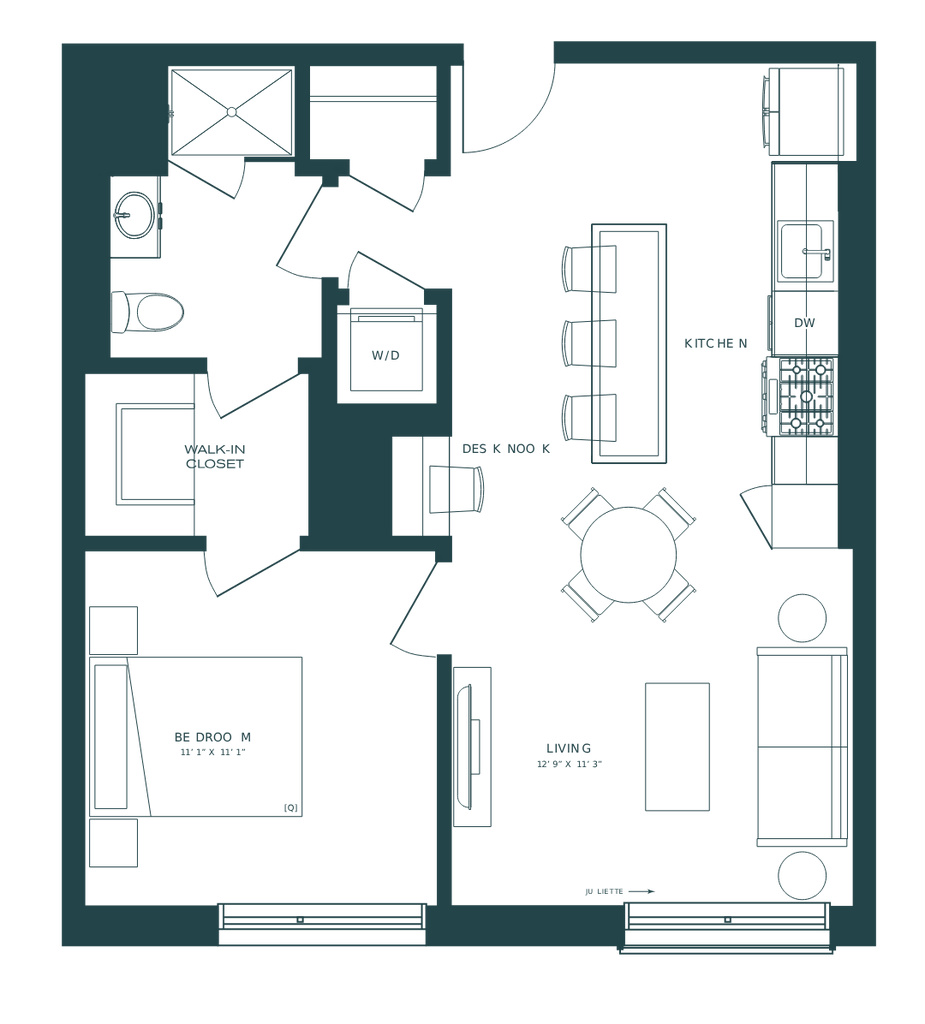 1 Bed, 1 Bath, 691 sq ftAvailable NowModel Gallery