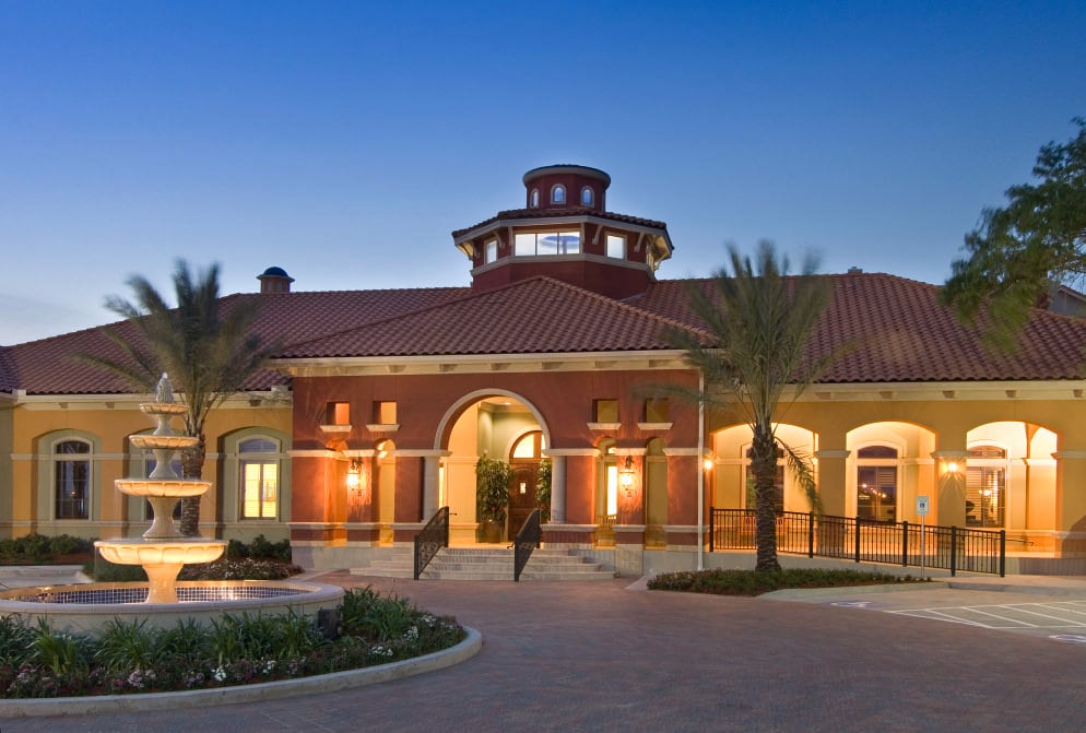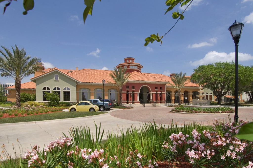 To create a quiet residential space within West 8's progressive, robust environment, Portico architecture breaks-up big spaces into smaller, more intimate settings. Colorful, four-story, mid-rise buildings are carved into flowing, curvilinear street patterns and an interconnected network of waterways, plazas, arcades, fountains and paseos which create intimate niche destinations to reinforce the pedestrian-friendly priority of this community. Portico's old world charm is achieved with its eclectic blend of Spanish, Mediterranean and Texan architectural elements, including articulated roof lines, wrought iron railings, upper floor balconies, arched entryways, enclosed courtyards, barrel-tile roofs and smooth stucco siding. Its twist on new world luxury is carefully crafted from an artistic array of high-end features and amenities inspired by the recent trends in custom homebuilding.