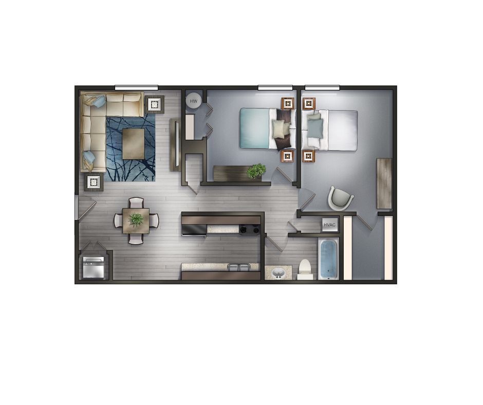 2 Beds, 1 Bath, 689 sq ftAvailable NowCheapest 2 BedroomThis is the cheapest 2 Bedroom at this PropertyModel Gallery