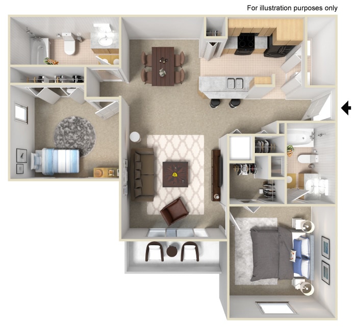 2 Beds, 2 Baths, 1107 sq ftModel Gallery