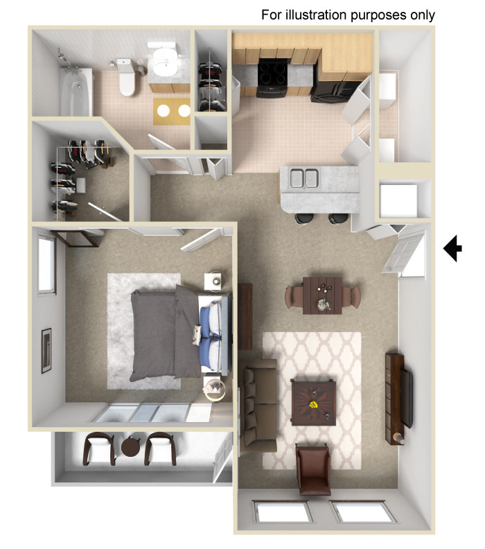 1 Bed, 1 Bath, 825 sq ftModel Gallery