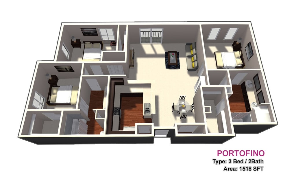 Apartment Model: 3 BED / 2 BATH3 Bedroom, 2 Bath, 1518 sq ftUnavailableFloorplansPhotos![]()
