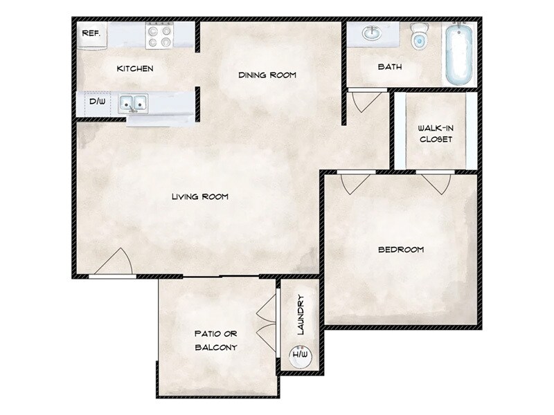 A1 - Floorplan 1 Apartment Unit: AUCMHEApartment Model: A1$9991 Bedroom, 1 Bath, 659 sq ftAvailable NowFloorplan A1R