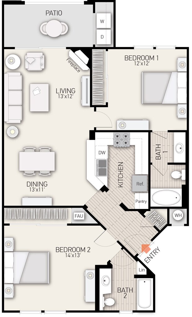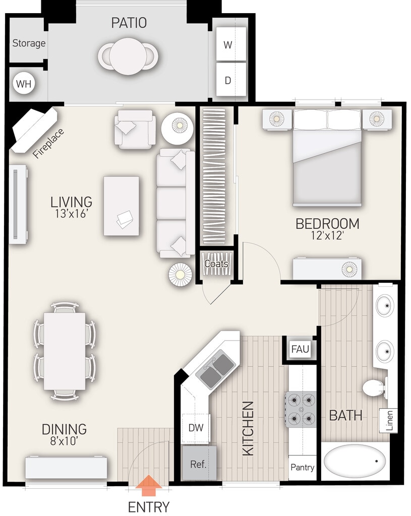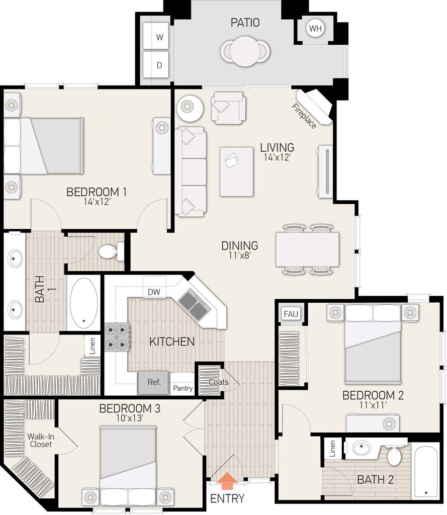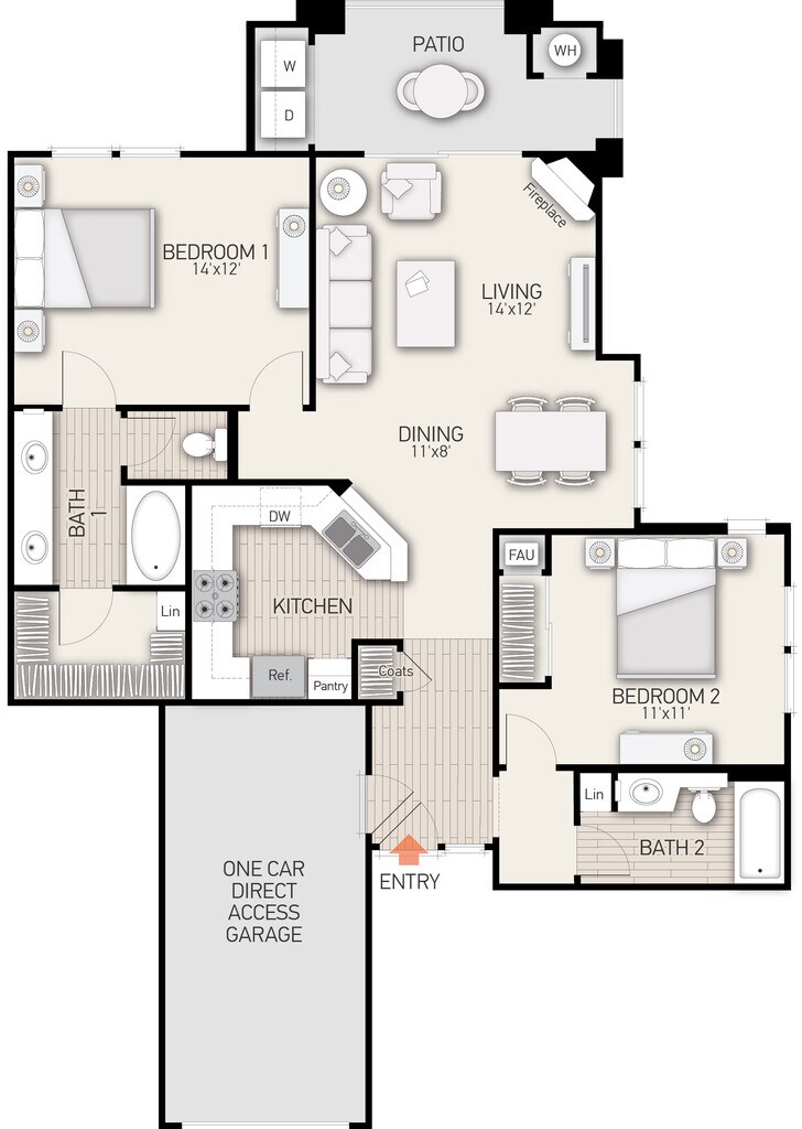 1 Bed, 1 Bath, 860 sq ftAvailable NowLargest 1 BedroomThis is the largest 1 Bedroom at this PropertyModel Gallery