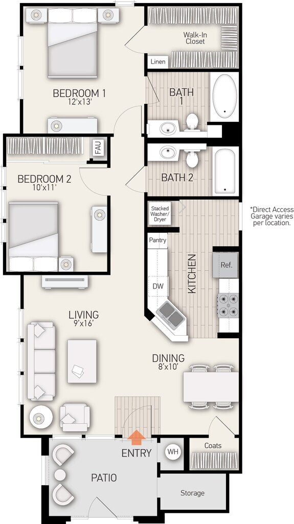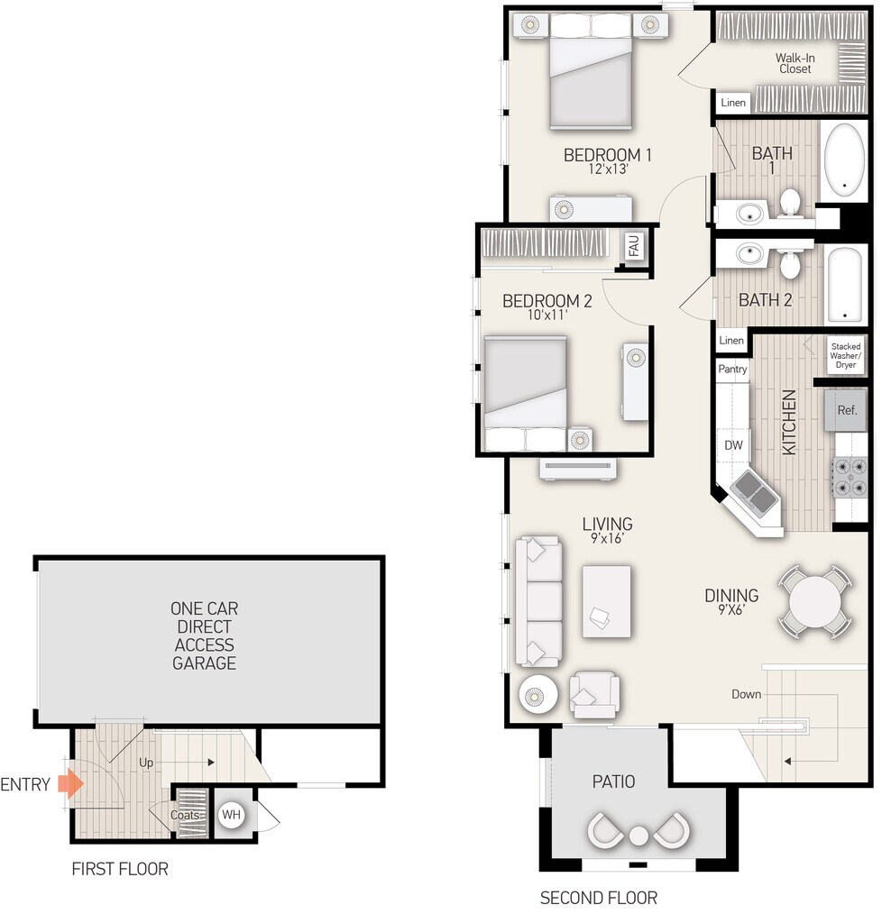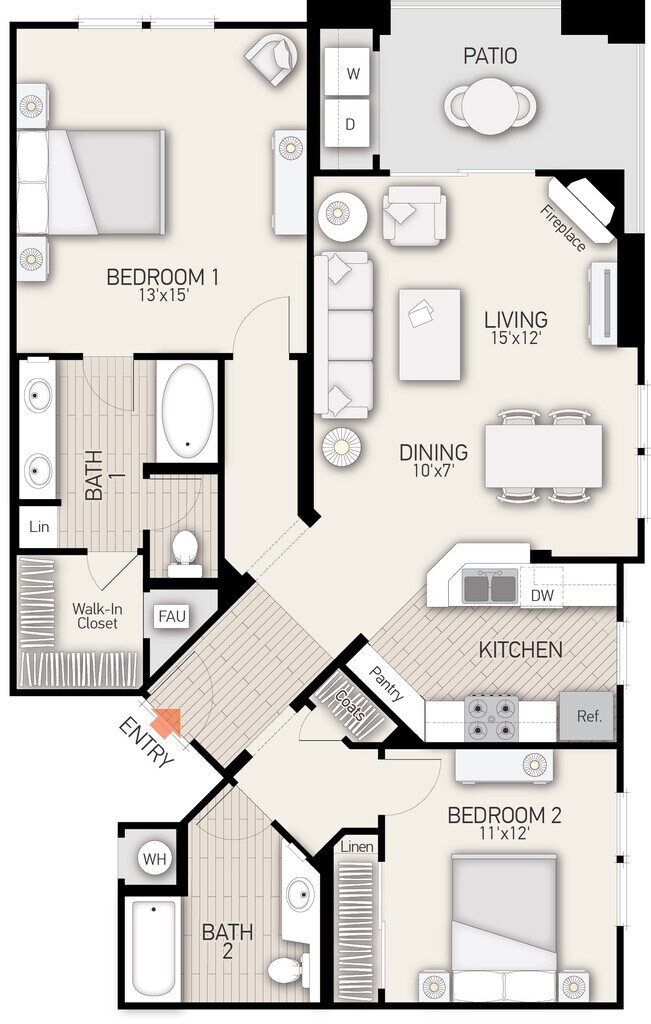 Apartment Model: Plan 2From $2,5901 Bedroom, 1 Bath, 810 sq ftAvailable Now![]()
