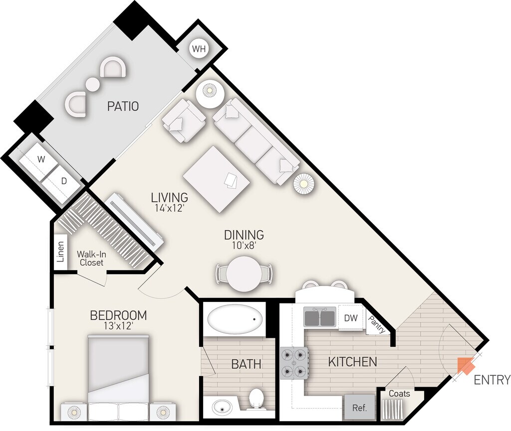 Apartment Model: Plan 5From $2,8951 Bedroom, 1 Bath, 860 sq ftAvailable Now![]()