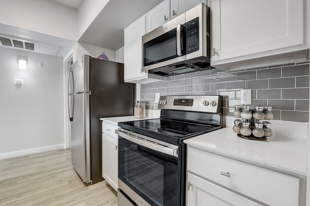 Welcome home to Portola on Russell Apartments. Discover our stunning remodeled apartment community perfectly nestled the Southwest Las Vegas, one of the most desirable areas to live and work. We invite you to surround yourself with beautiful trees, acres of lush landscaping and indulge in the luxury of beautiful, upscale modern living at affordable prices. Discover five spacious, thoughtfully designed one, two and three bedroom modern apartments. Each space is wonderfully up to date features such as; modern flat paneled cabinetry, white subway tile back splashes, stylish grey countertops, durable wood laminate flooring, energy efficient stainless steel appliances and more. Come take a peek and see what’s new. Schedule a tour today.