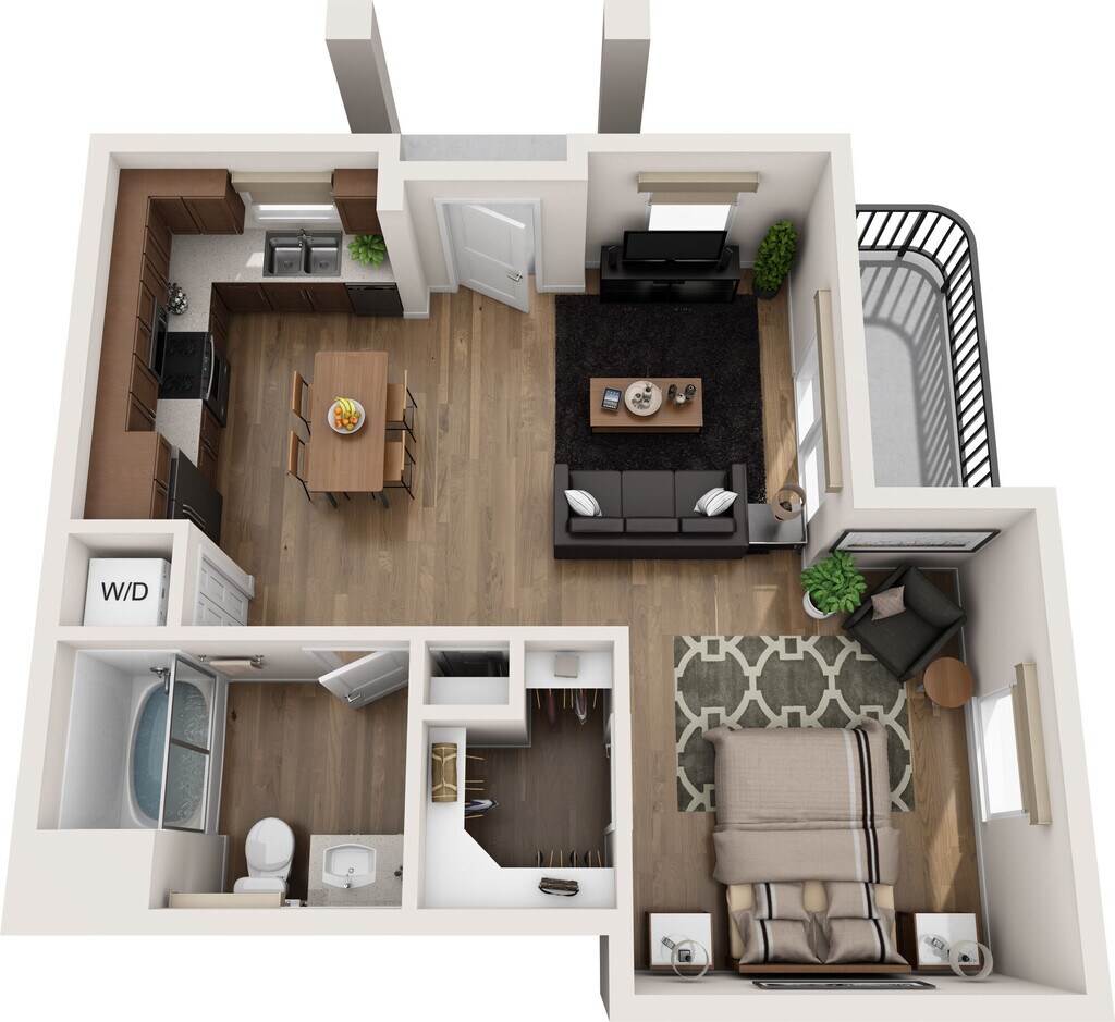 Studio, 1 Bath, 614 sq ftModel Gallery