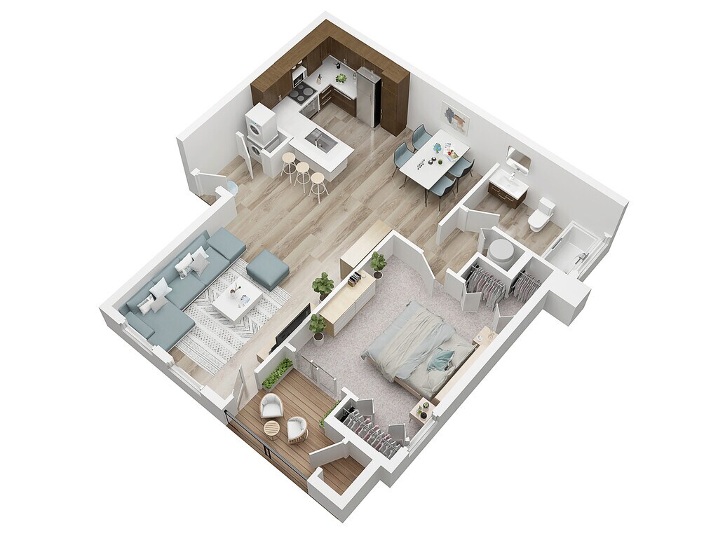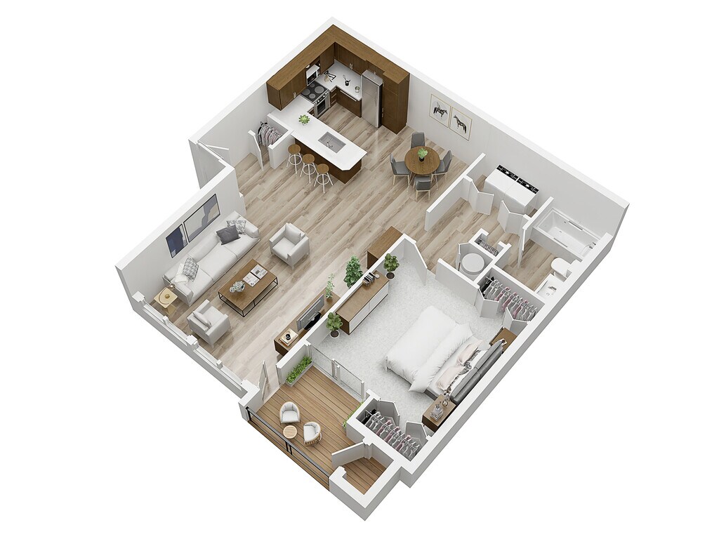 1 Bed, 1 Bath, 684 sq ftModel Gallery