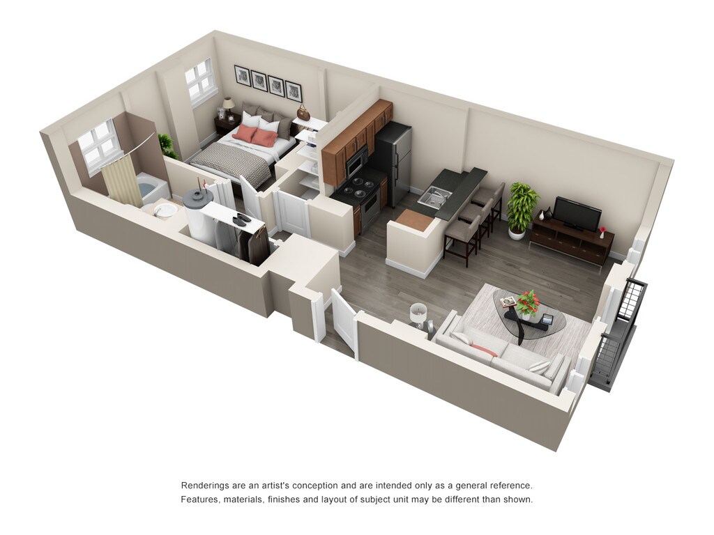 1 Bed, 1 Bath, 423 sq ftModel Gallery