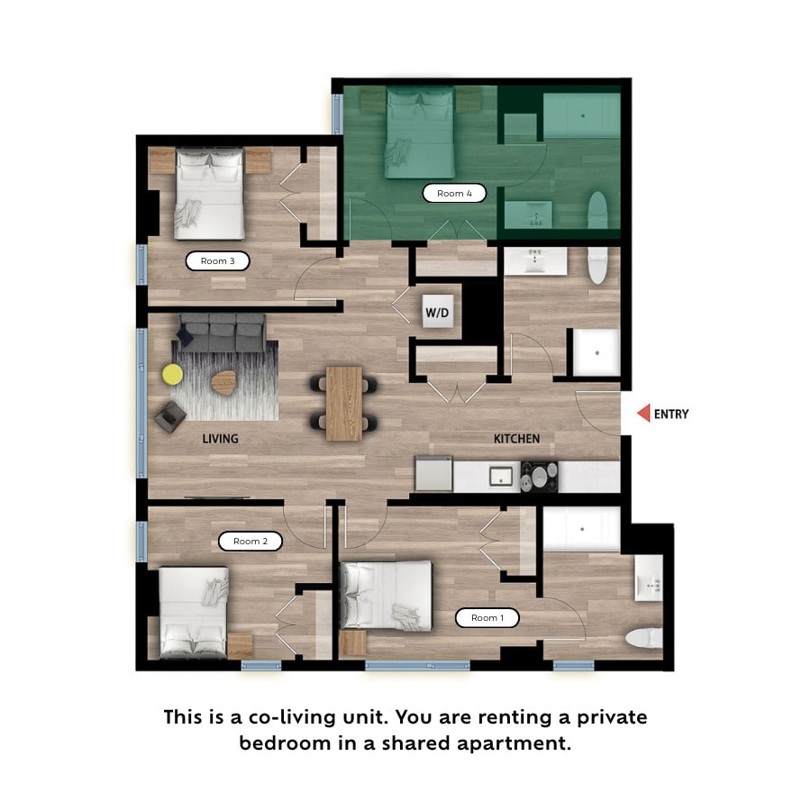 Private Bed in a 4 Bed 3 Bath C - Floorplan 4 ![]()
