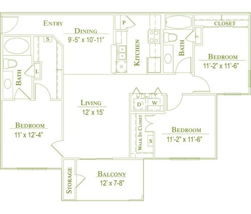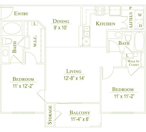 Apartment Model: Plan B12 Bedroom, 2 Bath, 983 sq ftUnavailable![]() - Plan B1 - Floorplan 1