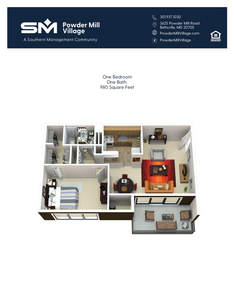 You will be in awe of our newly renovated, spacious apartment homes. From separate dining areas to private balconies, our attention to detail in apartment layout will only impress you. Not only do our apartments speak for themselves, but our location is superior. Just minutes from shopping, University of Maryland and the beltway lies picturesque Powder Mill Village!