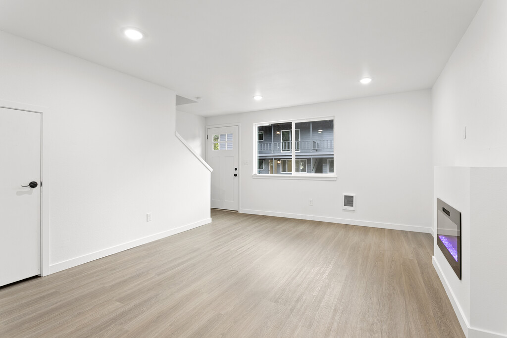 Welcome to Powell Place in Portland, Oregon! Our town-home style apartments offer the perfect blend of comfort and convenience. Enjoy the luxury of a fully fenced backyard, ideal for relaxing or entertaining outdoors. Each unit comes equipped with a washer and dryer for added convenience. Cozy up by the electric fireplace on chilly evenings or take a stroll through the community courtyard. Pets are welcome in our pet-friendly community. Experience the best of apartment living at Powell Place.