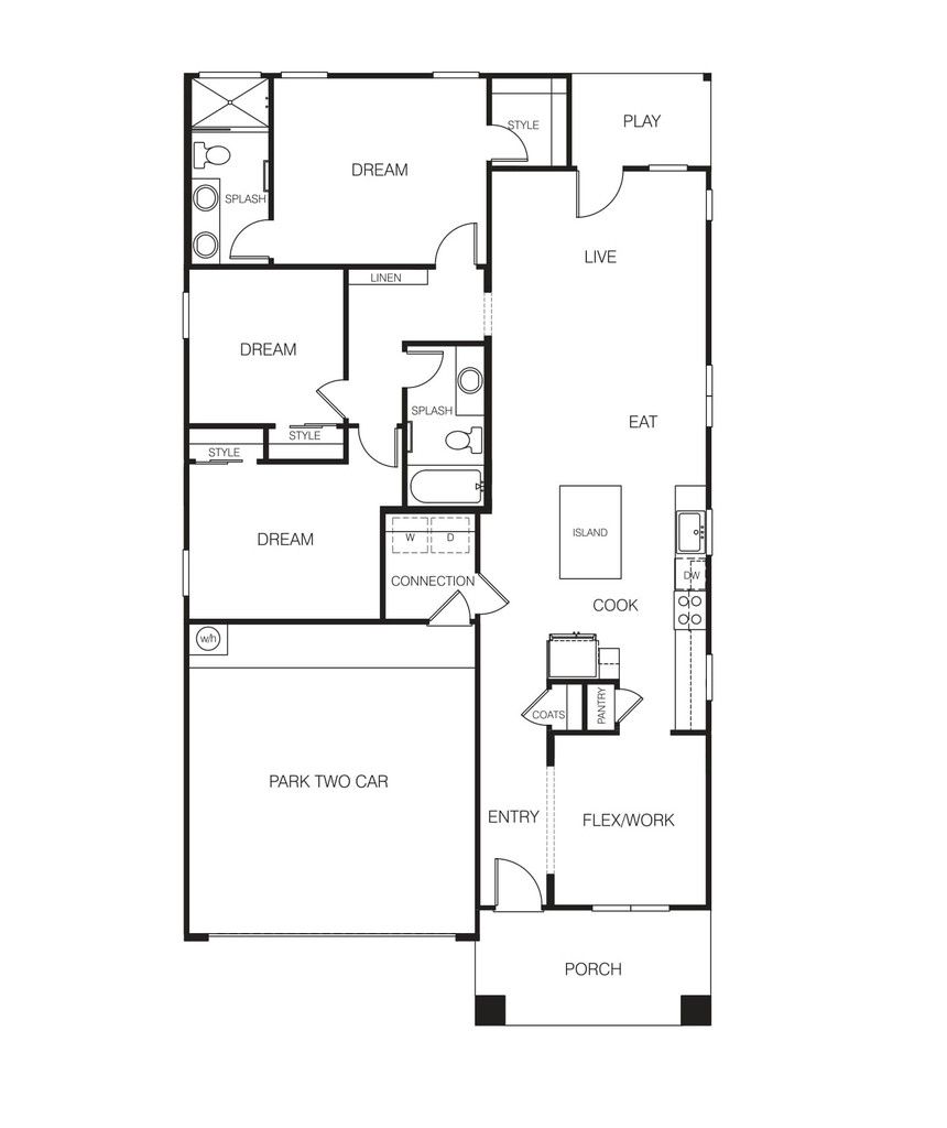 Azalea - Floorplan 1 Floor plans are artist's rendering. All dimensions are approximate. Actual product and specifications may vary in dimension or detail. Not all features are available in every rental home. Prices and availability are subject to change. Base rent is based on monthly frequency. Additional fees may apply, such as but not limited to package delivery, trash, water, amenities, etc. Deposits vary. Please see a representative for details.