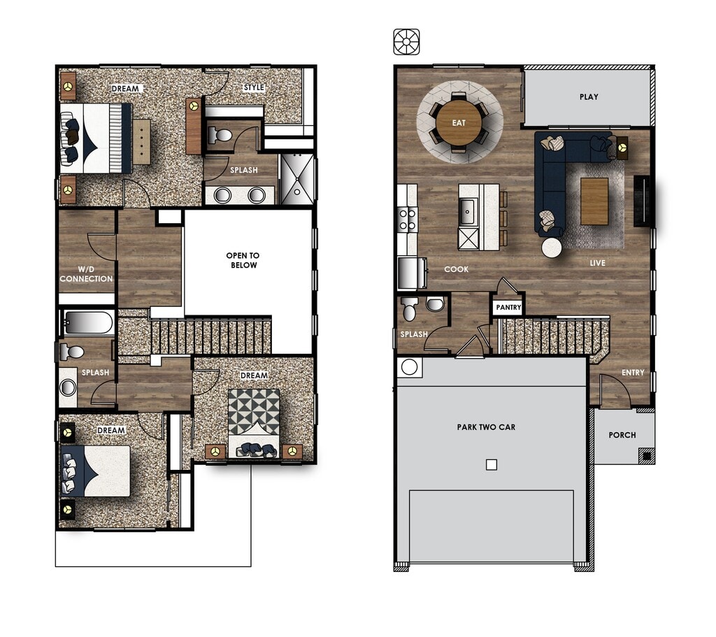 3 Beds, 2.5 Baths, 1555 sq ftAvailable NowModel Gallery