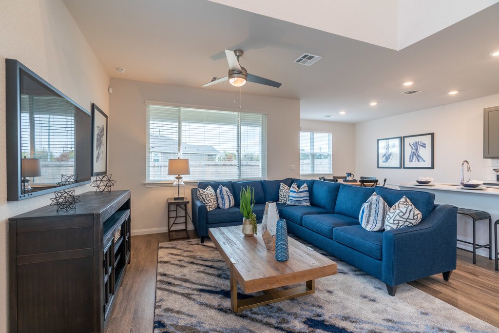Bluebonnet - Floorplan 9 Floor plans are artist's rendering. All dimensions are approximate. Actual product and specifications may vary in dimension or detail. Not all features are available in every rental home. Prices and availability are subject to change. Base rent is based on monthly frequency. Additional fees may apply, such as but not limited to package delivery, trash, water, amenities, etc. Deposits vary. Please see a representative for details.